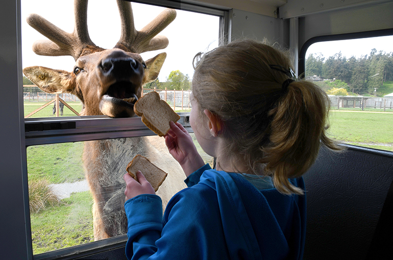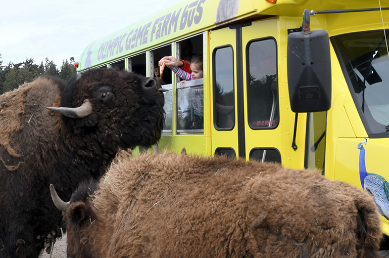 Guests will take the 10:30am sailing from Victoria and arrive in Port Angeles at noon to catch the 12:30pm daily Game Farm Bus departure. The tour runs from 12:30pm until approximately 4:00pm and includes time for guests to visit the petting zoo, washrooms, gift shop and canteen in addition to the drive-through animal tour. |